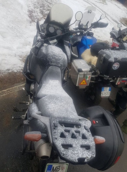 V petek se prikažeta in pridružita ob ognjišču še Zlatko iz kluba Muddy Zagreb in Ivica Dukarič iz kluba JAL Ivanec. Ivica je prišel samo prespat, v soboto pa sta šla s Simonom proti domu. Čisto druga zgodba pa je Zlatko. Od srede je bil na Tauerntreffenu blizu Triebena na skoraj 1700m nadmorske in čezmeterskem snegu, ter temperatura krepko pod -10. Aja nisem omenil snežnega neurja čez 100 km/h tam gori. Pogoj za udeležbo na tem srečanju je povabilo organizatorja in snežne verige. Globok priklon Zlatko. On mi je potem delal družbo do doma. V soboto so se tudi nastanili v bližini člani motokluba Posavac Orašje in MK Balkan. Pot domov pa je bila malo drugačna kot proti Nemčiji. Z Zlatkotom sma pospravila smeti, hiši sma spravila na motorje in se okrog 12.00 odpeljala proti domu. Prvih 100 km je bilo lepo, potem pa sneg dokler nisma pišla iz Graza. Na srečo sma bila ravno toliko hitra, da sma pobegnila preden se je začel prijemat cestišča. Zaradi tega sma imela samo eno kratko pavzo v Triebenu za tankanje in brzinski čaj.